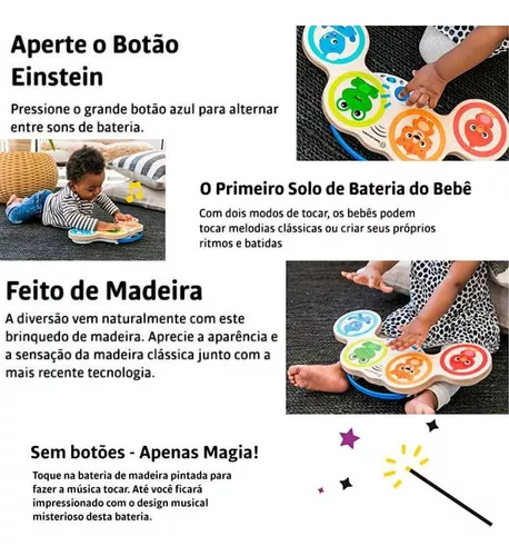 O Tambor permite que o bebê alterne entre tocar junto com músicas clássicas ou mudar para seu próprio ritmo!